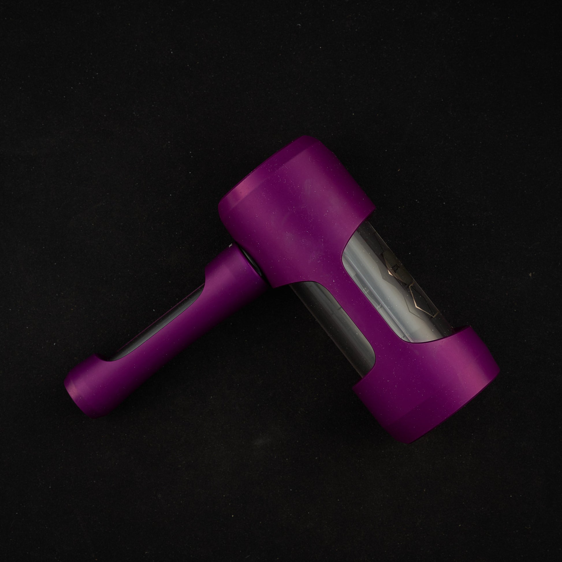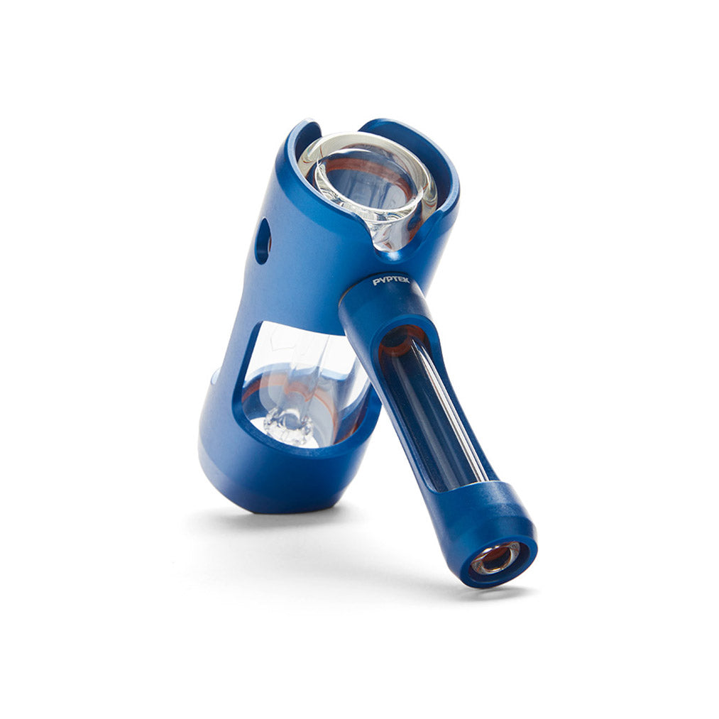 Staying true to PYPTEK’s vision of all glass products and their signature aluminum exoskeleton design, you can easily judge the smoke levels with large viewing windows to display rapid bubble action. An additional viewing window allows you to keep an eye on your bowl. A big carb lends effortless control of the air/smoke mix and an insert with Purr Glass’s showered percolator.